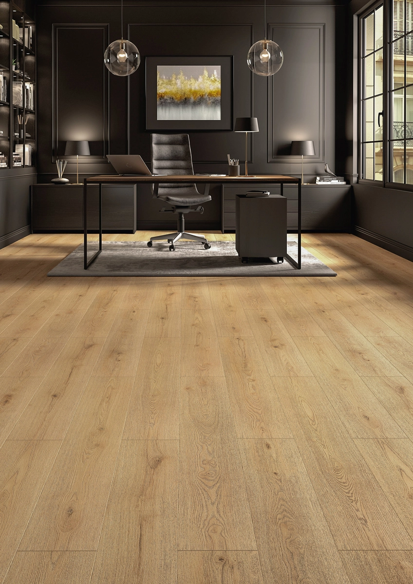 De warme houttint straalt rust uit en is makkelijk te combineren met verschillende meubels en materialen. De voelbare structuur versterkt het realistische houtbeeld, terwijl de 4-zijdige V-groef de brede plankvorm mooi accentueert. Of je nu een lichte woonkeuken hebt of een knusse woonkamer, deze vloer voegt karakter toe zonder te overheersen.