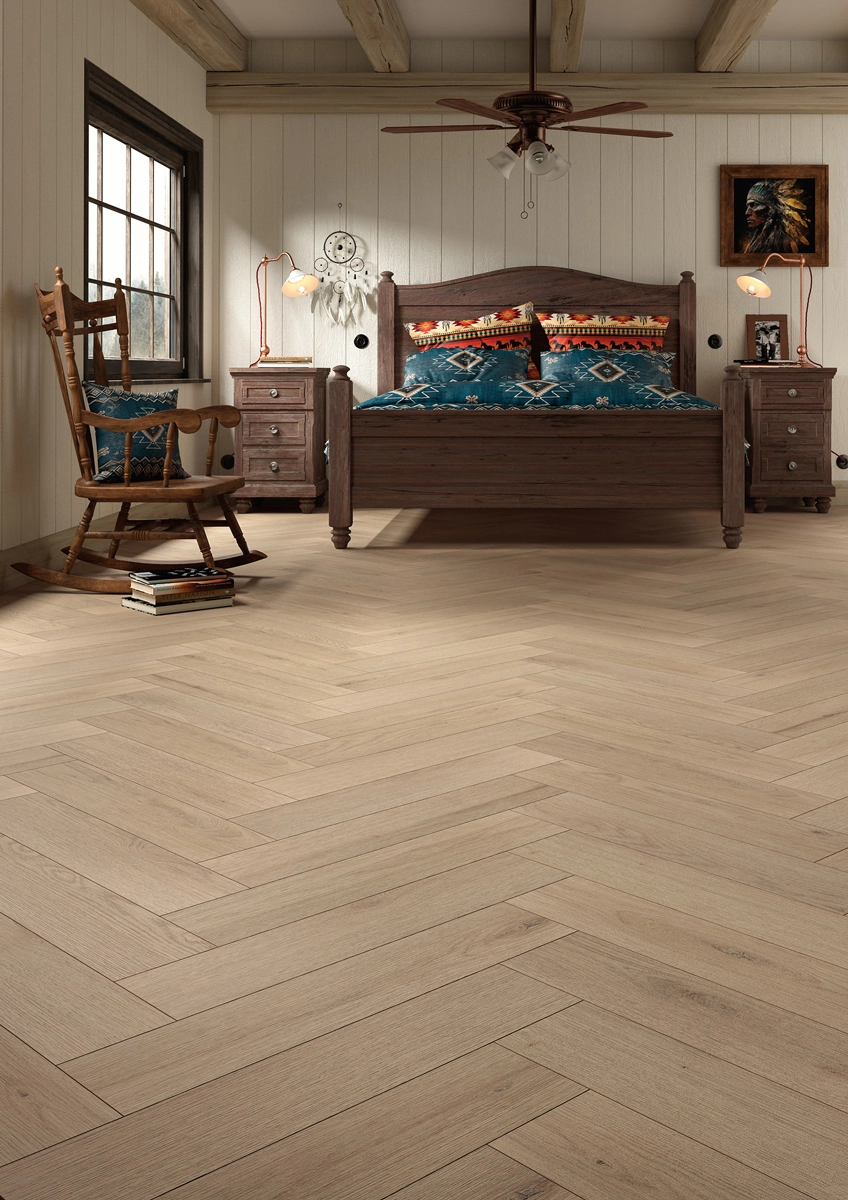 De unieke greige kleur brengt rust én warmte, met een subtiel spel van tinten dat zich aanpast aan het licht in je woning. De voelbare structuur versterkt de houtlook, terwijl de 4-zijdige V-groef het visgraatpatroon strak laat uitkomen. Het resultaat is een vloer met diepte, karakter en een stijlvolle uitstraling zonder schreeuwerig te zijn.