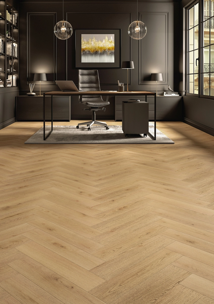 De warme eikentint straalt rust en authenticiteit uit. Dankzij de voelbare structuur krijgt het visgraatpatroon extra diepte, wat zorgt voor een levendig maar gebalanceerd effect. De 4-zijdige V-groef benadrukt het klassieke patroon en geeft de vloer een verzorgde, hoogwaardige uitstraling. Van moderne woonkamers tot landelijke keukens: deze vloer voelt zich overal thuis.