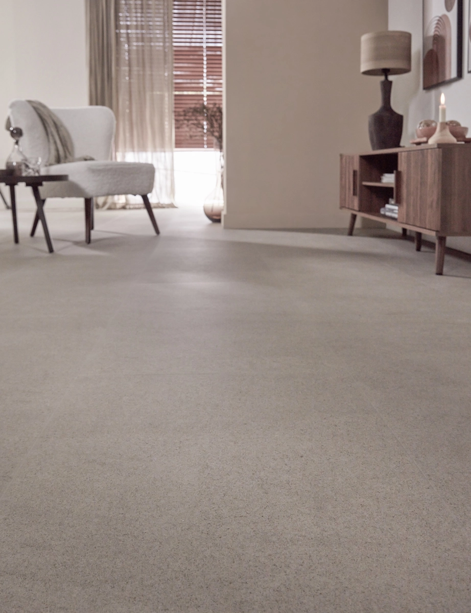 De Floer Tegel Click PVC - Betonlook Greige is niet alleen een plaatje om te zien, maar ook een verantwoorde keuze. Deze vloer is ftalaatvrij en voorzien van sterke keurmerken zoals FloorScore, Eurofins Gold, GreenGuard Gold en REACH. Allemaal garanties voor een gezond binnenklimaat. Combineer de vloer met de Rigid Click PVC ondervloer en je ontvangt er 20 jaar fabrieksgarantie bij. Liever verlijmen? Ook dat kan, want deze stijlvolle greige vloer is óók verkrijgbaar als Tegel PVC vloer.