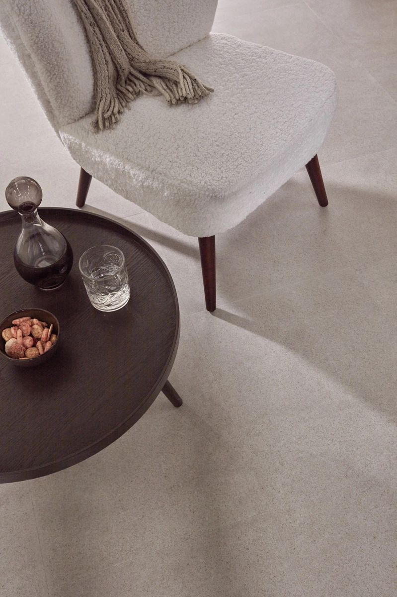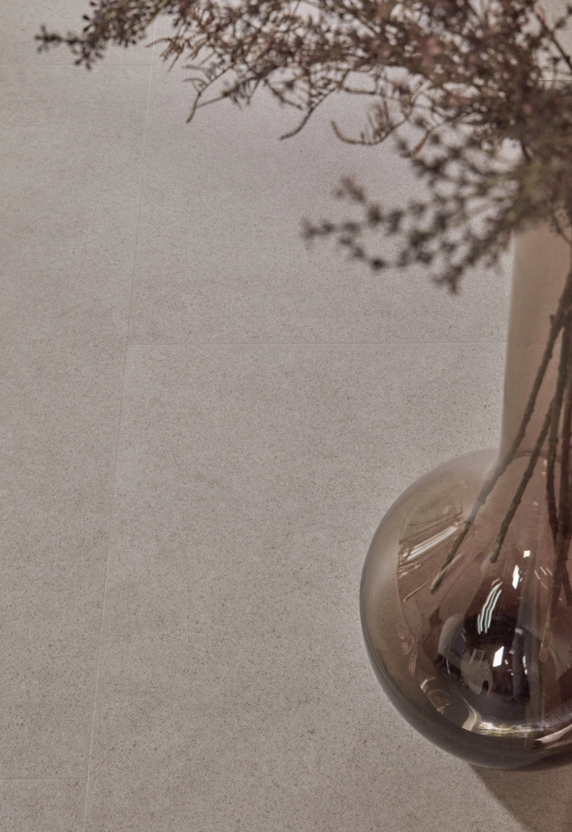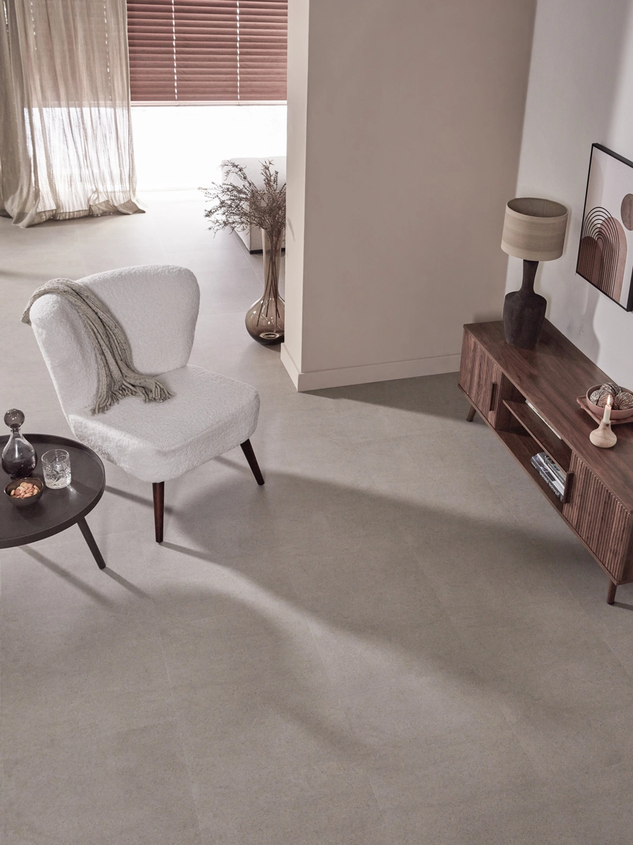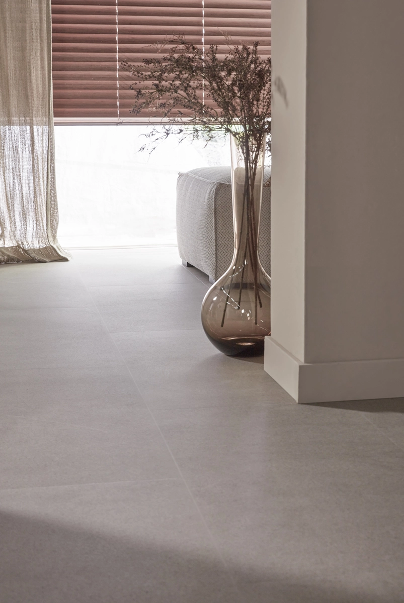 petters, natte schoenen of een omgevallen glas? Geen probleem voor deze greige tegelvloer! Dankzij de 100% waterbestendige afwerking voelt hij zich helemaal thuis in de keuken, hal of badkamer. Met een warmteweerstand van slechts 0,039 m²K/W is deze vloer ook perfect te combineren met vloerverwarming én vloerkoeling. Warm, stijlvol én praktisch dus.