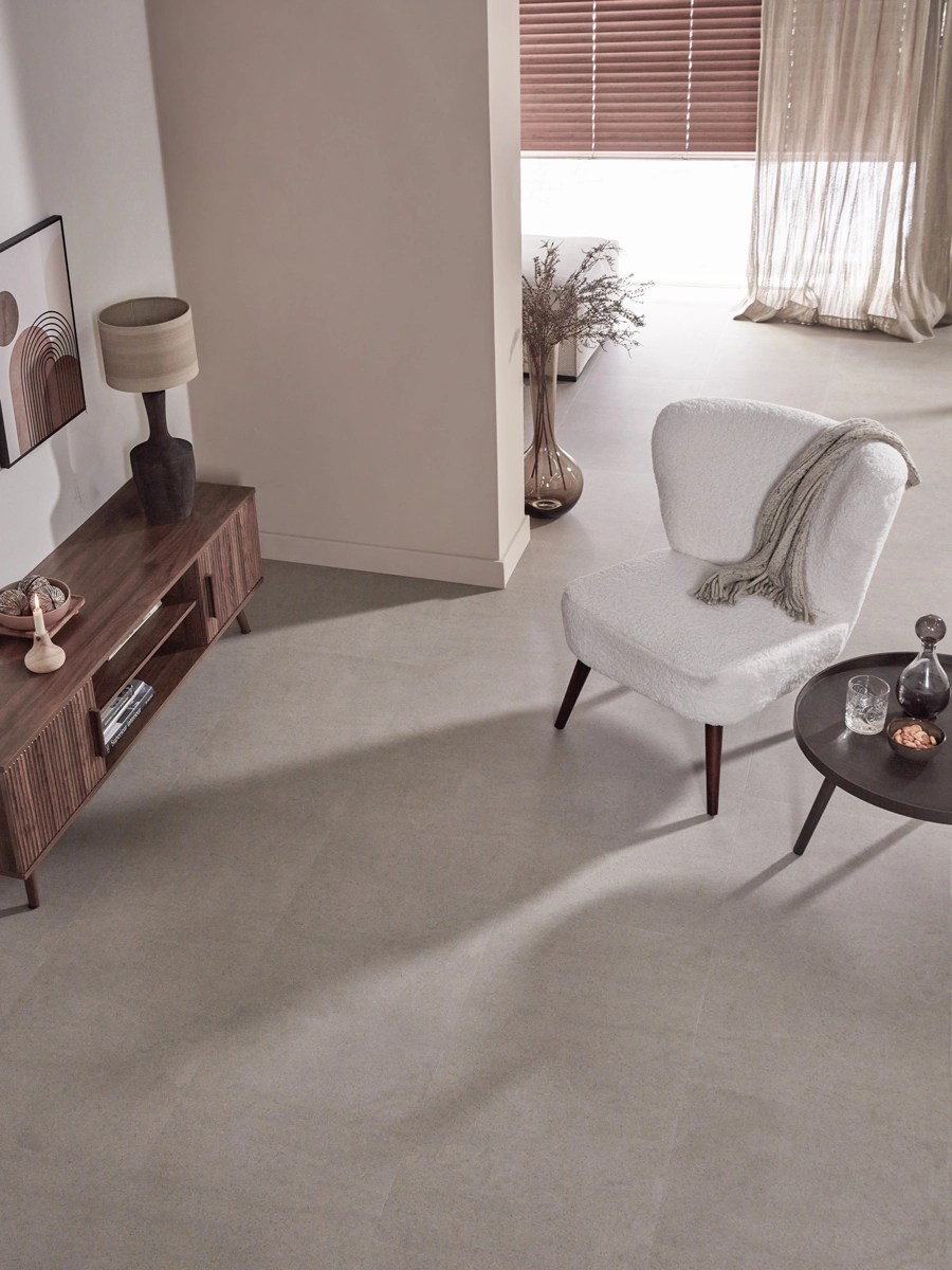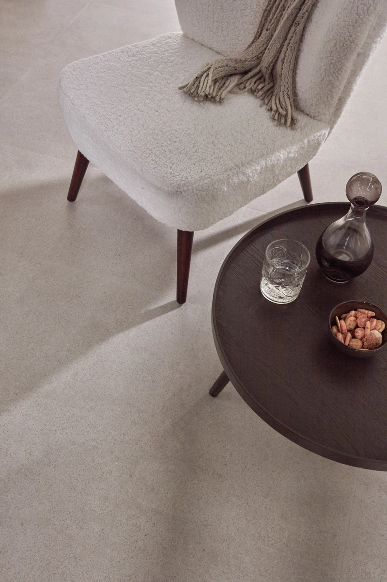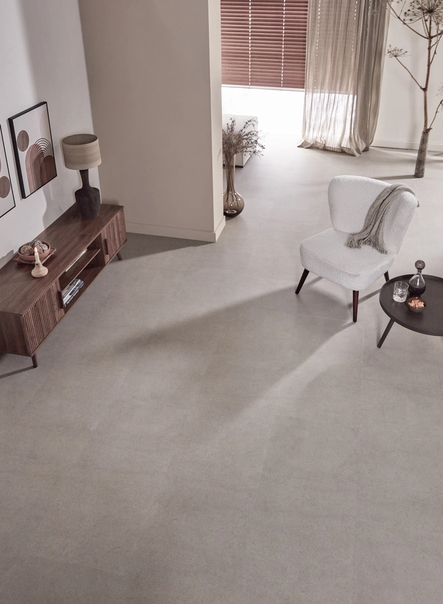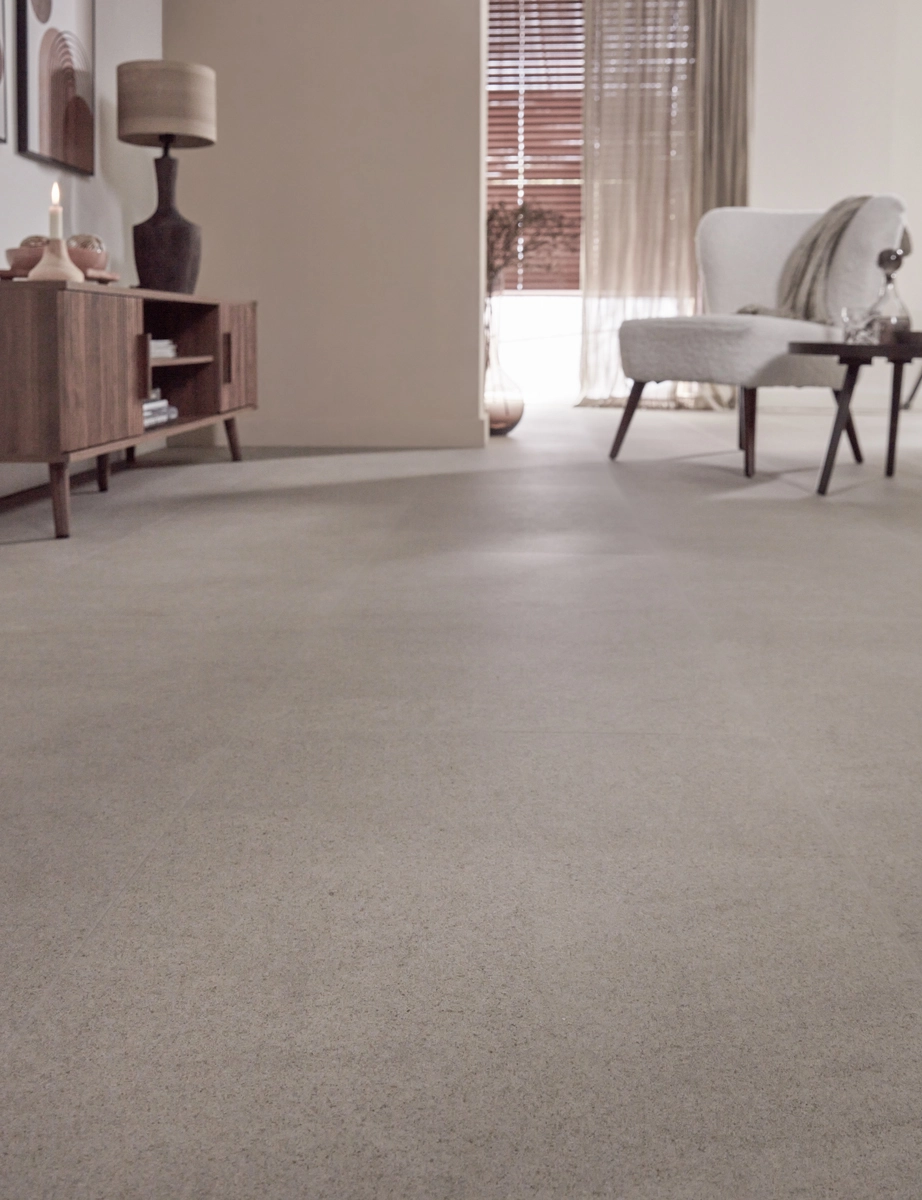 Deze Betonlook PVC tegelvloer werkt perfect met vloerverwarming en -verkoeling. De lage warmteweerstand van slechts 0,019 m²K/W zorgt ervoor dat de vloer optimaal warmte geleidt, zodat je in de winter kunt genieten van een comfortabele en warme vloer. Of je nu een industrieel, modern of klassiek interieur hebt, deze vloer past perfect in elke ruimte. Door de combinatie van de industriële betonlook en de warme greige tint creëer je een stijlvolle en tijdloze sfeer die in verschillende stijlen kan worden toegepast.