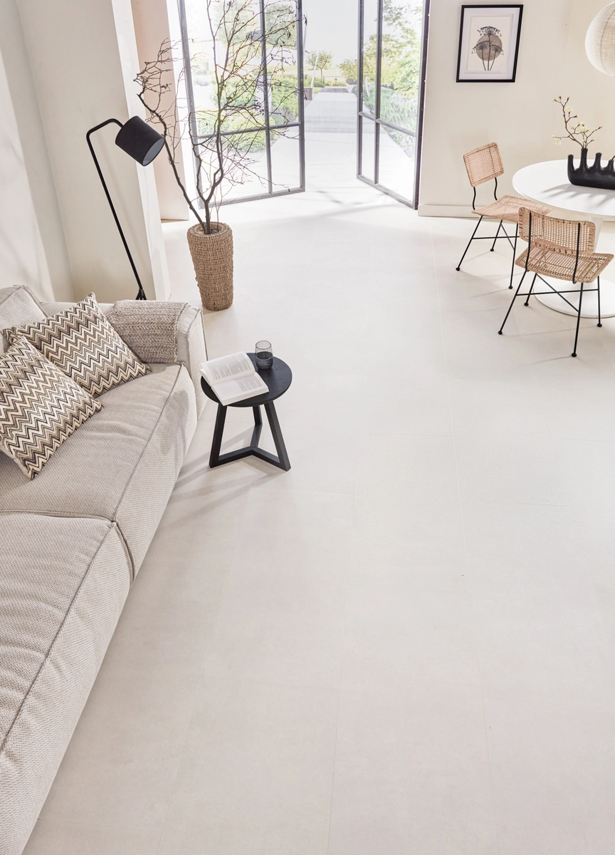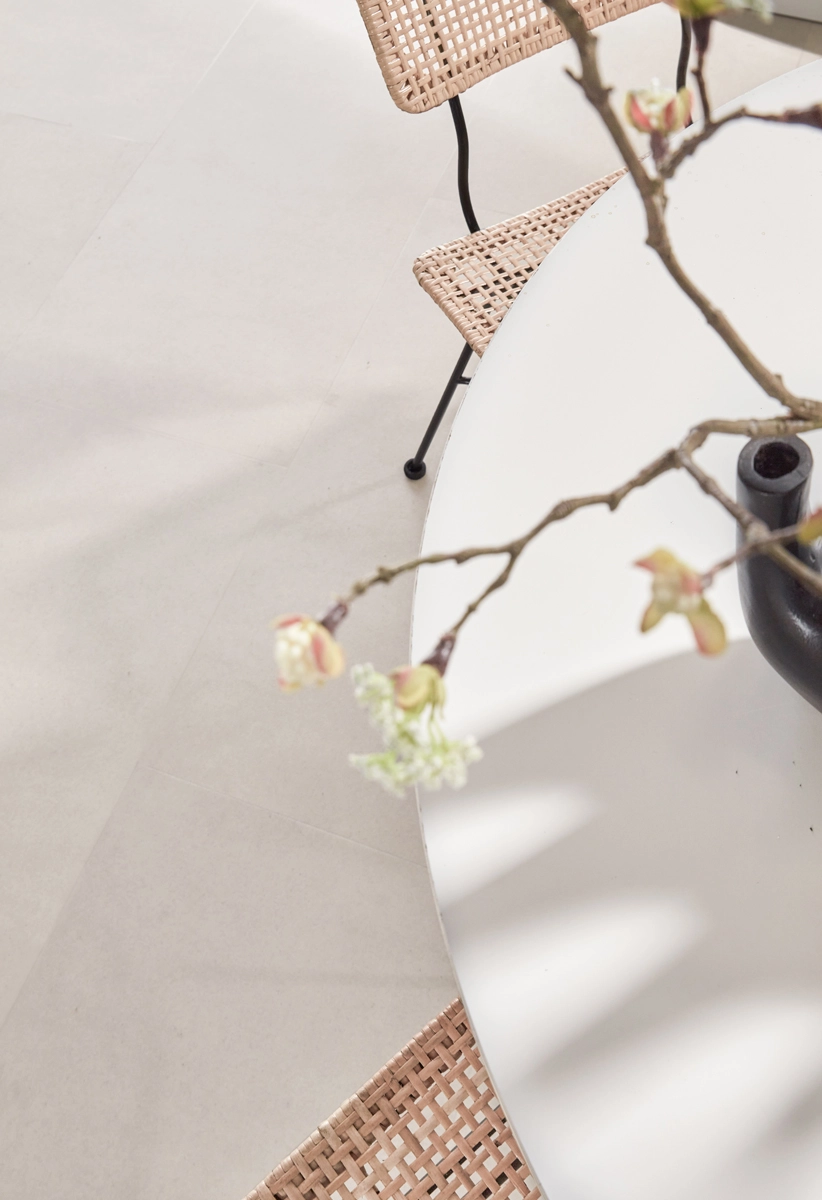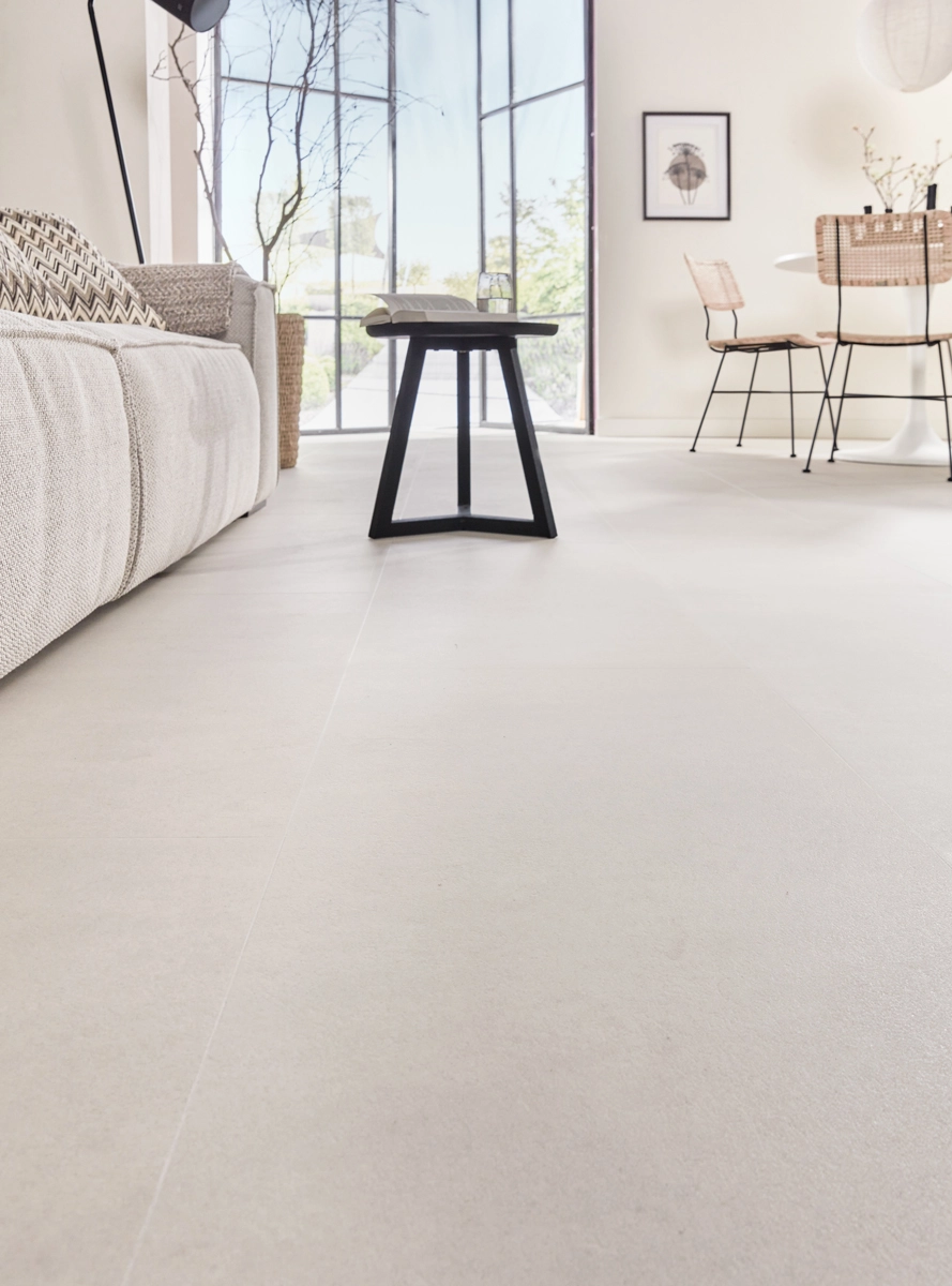 Naast zijn waterbestendigheid is deze tegelvloer uitstekend te combineren met vloerverwarming en -verkoeling. De lage warmteweerstand van slechts 0,019 m²K/W zorgt ervoor dat je in de winter met warme voeten geniet. Met zijn zandkleurige betonlook en praktische eigenschappen is deze vloer de perfecte keuze voor een veelzijdig interieur. Zo krijg je de uitstraling van echte betontegels, maar met alle voordelen van Floer PVC.