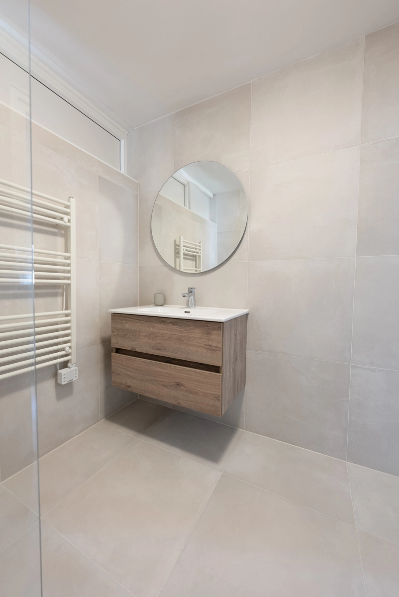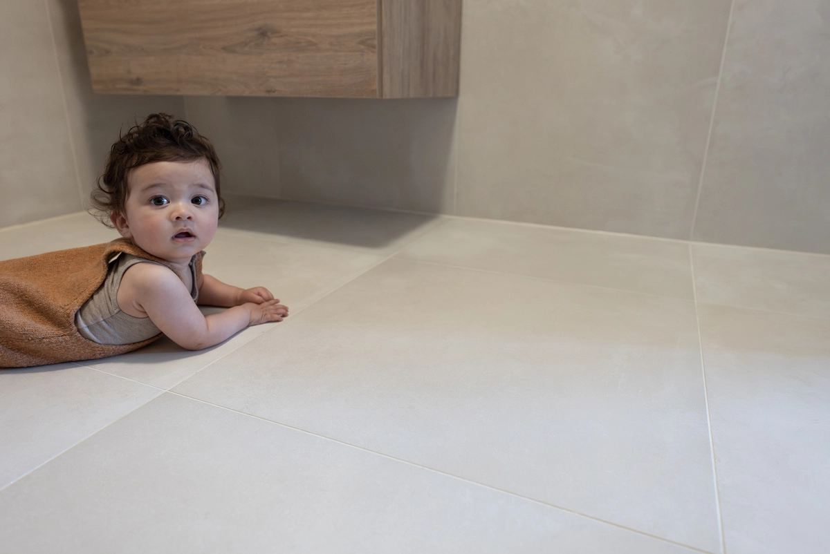 Keramische Tegel Betonlook Beige is voorzien van een innovatieve antibacteriële technologie die actief tot 99,9% van de bacteriën en schimmels verwijderd. Deze unieke laag voorkomt dat vloeistoffen in de tegel trekken, wat niet alleen zorgt voor een hygiënischer oppervlak maar ook voor eenvoudig onderhoud en een langere levensduur van de vloer. De betonlooktegel is ontworpen voor normaal tot intensief huishoudelijk gebruik. Of je nu op zoek bent naar een vloer voor je woonkamer, keuken of badkamer de Keramische Tegel Betonlook Beige biedt een stijlvolle en duurzame oplossing. Ontdek de unieke charme van deze betonlooktegels en geef je interieur een warme, strakke uitstraling. Helemaal wild geworden van deze vloer? Vraag dan nu jouw proefstaal aan!