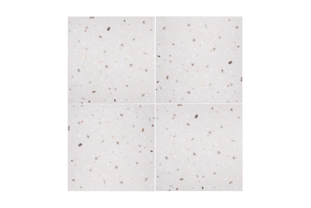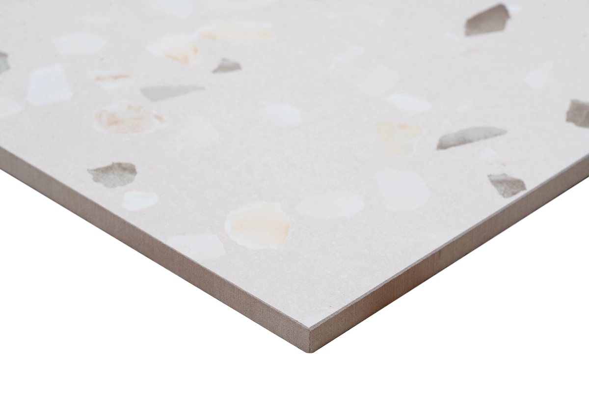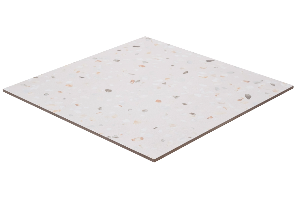 Deze keramische tegels met de sfeervolle uitstraling van terrazzo combineren een aantrekkelijk design met een reeks aan praktische voordelen. De vlakke, strakke structuur van de tegels zorgt voor een zeer eenvoudig onderhoud. Hierdoor kun je meer tijd besteden aan het genieten van je interieur en minder aan schoonmaken. De dikte van 9,5 mm zorgt voor een uitzonderlijke duurzaamheid en een lange levensduur, zelfs in ruimtes die veel worden gebruikt. Met de betrouwbare EPD en Floorscore keurmerken ben je zeker van een kwaliteitsproduct. De 60x60 terrazzolook tegels zijn ook praktisch in verschillende omgevingen dankzij hun waterbestendige en vorstbestendige eigenschappen. Bovendien bieden deze tegels extra veiligheid dankzij de R9 anti-slip classificatie, waardoor ze perfect geschikt zijn voor ruimtes met mogelijk slipgevaar.