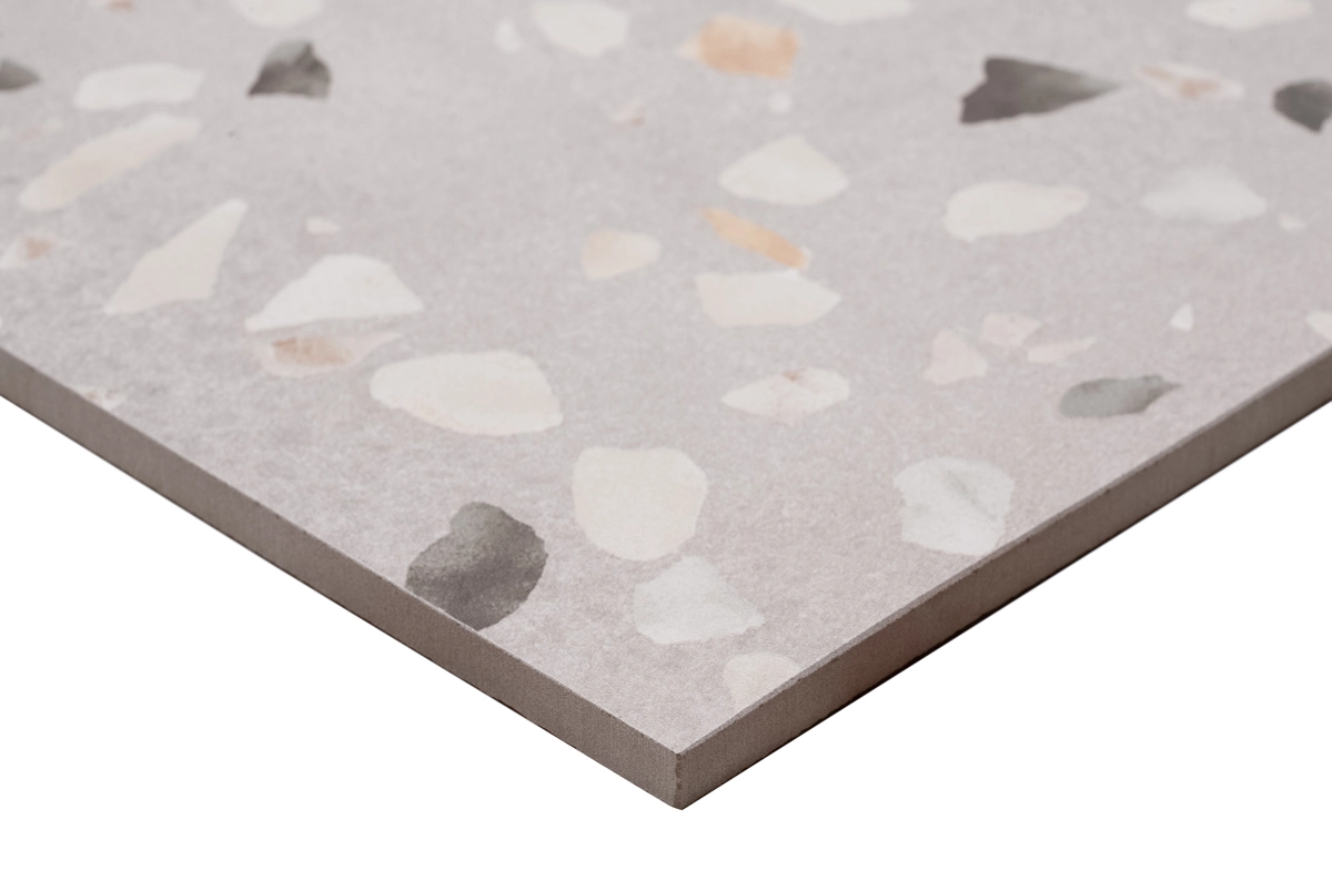 Deze keramische terrazzolook tegels zijn niet alleen visueel aantrekkelijk, maar ook zeer praktisch. De vlakke structuur is eenvoudig te reinigen, en de dikte van 9,5 mm zorgt voor een duurzame vloer- of wandbekleding die bestand is tegen dagelijks gebruik. De 60x60 terrazzolook tegels zijn waterbestendig, waardoor ze in verschillende binnenruimtes gebruikt kunnen worden. Met de erkende EPD en Floorscore keurmerken ben je zeker van een hoogwaardig product dat voldoet aan strenge kwaliteitseisen op zowel Europees als nationaal niveau. Daarnaast zijn ze erg geschikt voor vloerverwarming en -verkoeling, wat bijdraagt aan een fijn leefklimaat.