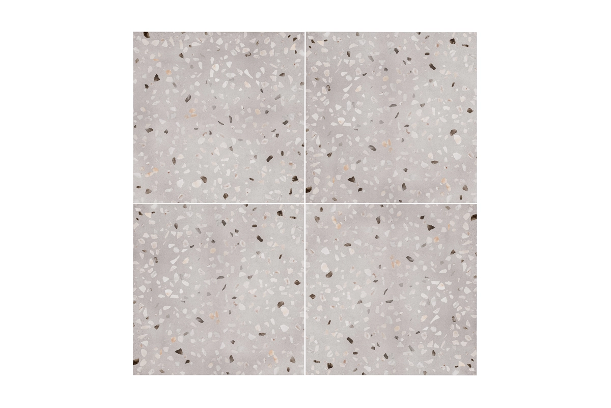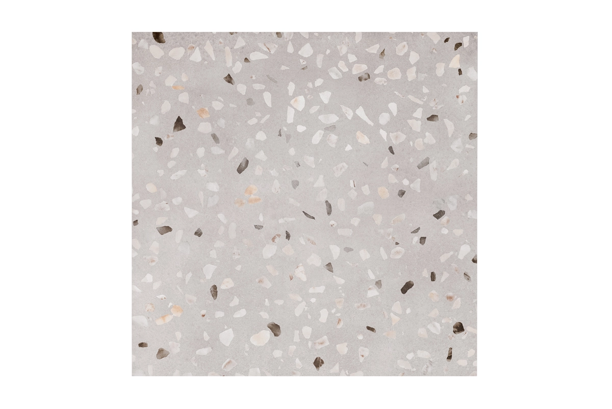 Laat je betoveren door de verfijnde uitstraling van Venetië met de Floer Keramische Tegel Terrazzolook tegel – Venezia. Deze prachtige terrazzolook tegel, met een ruime afmeting van 60 x 60 cm, straalt een uitgesproken sfeer van luxe en elegante stijl uit. Als geglazuurde keramische tegel is het oppervlak afgewerkt met een slijtvaste glazuurlaag, die zorgt voor kleurvastheid, vlekbestendigheid en eenvoudig onderhoud. De zachte, grijze kleur vormt een rustige basis, waarop lichte accenten een verfijnd en stijlvol patroon creëren. Deze samenhangende combinatie zorgt voor een klassieke uitstraling die zich naadloos aansluit in zowel moderne stijlen als meer klassiek gerichte interieurs.